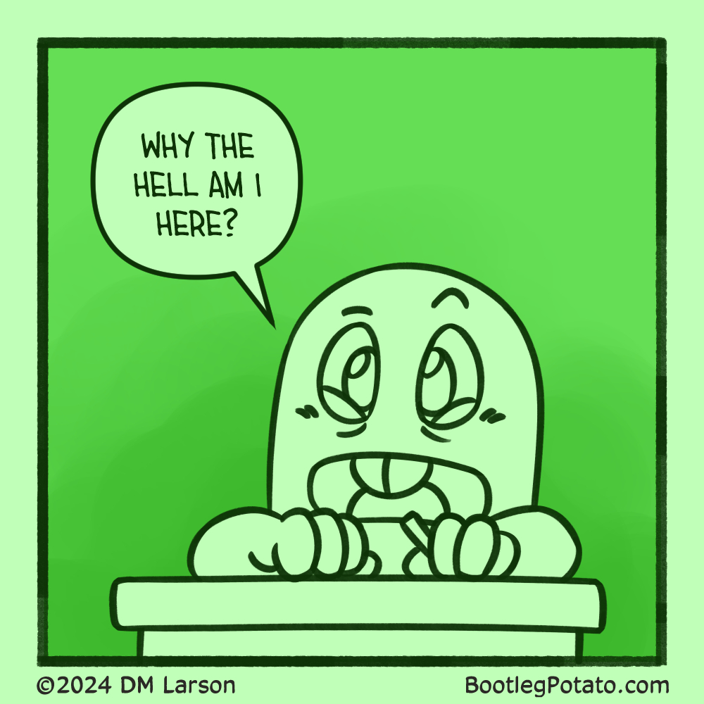 Comic strips about potato people with crippling anxiety, puppets with questionable advice, and other topics that will surly disappoint my father.